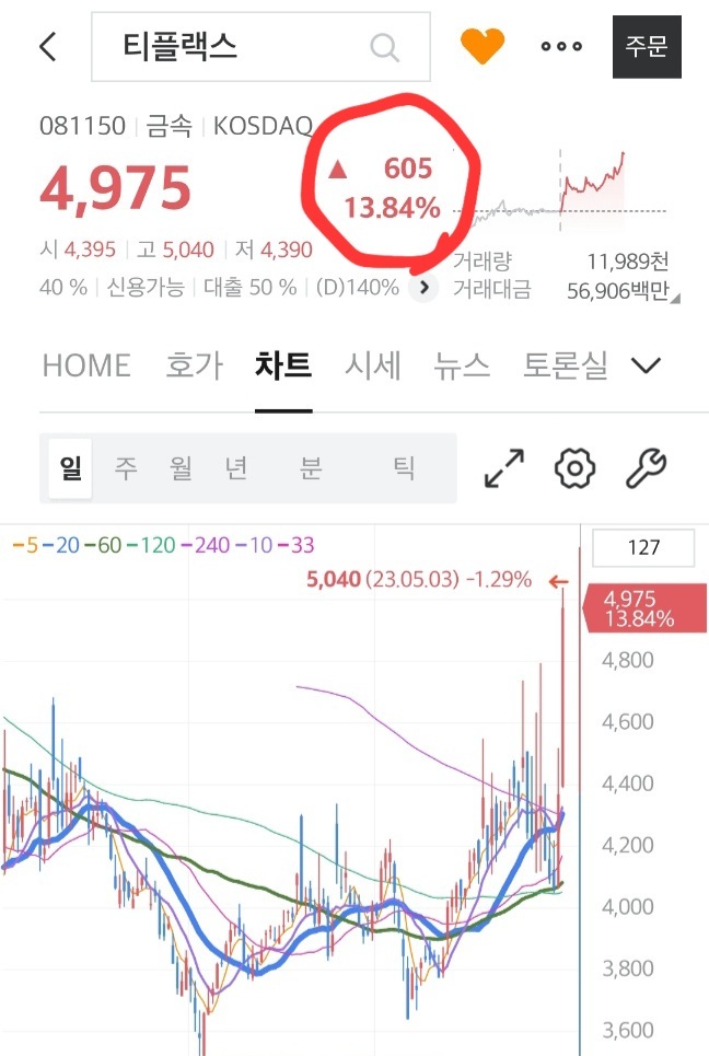 어제 2%대의 수익만 보고 매도해버린 티플렉스가 오늘 13.84%가 오르는 일이 벌어졌다. 이래서 공부를 해야 하는 것이지. 티플렉스 전고점 돌파, 거래량 터짐, 5000원부터 또 저항(올해 5000원도 돌파할 거라 예상한다는 두란님)