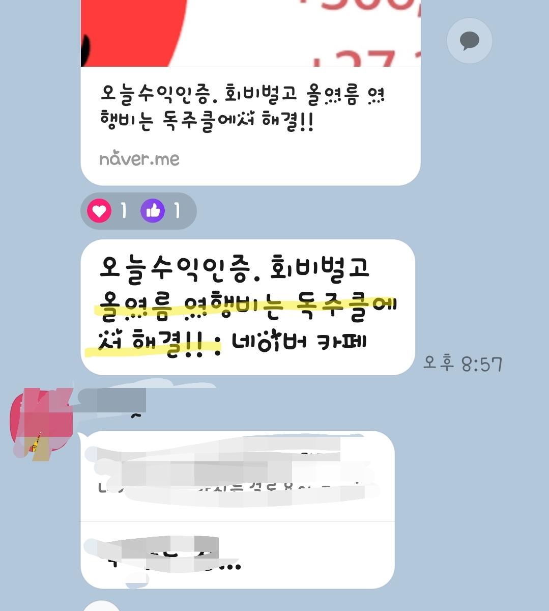 그런 가족들이니 서로서로 축하는 기본이고 이익 났다며 카카오톡 선물까지 하는 사람들이다.